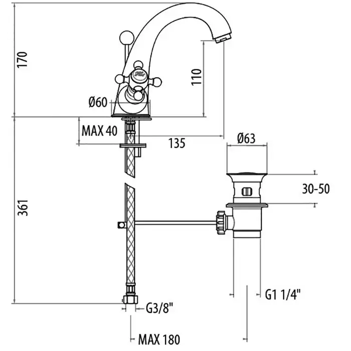 Gattoni Vivaldi Смеситель для раковины с донным клапаном, высота излива 110мм, цвет золото (С царапиной на носике!) (НЕ произв!)