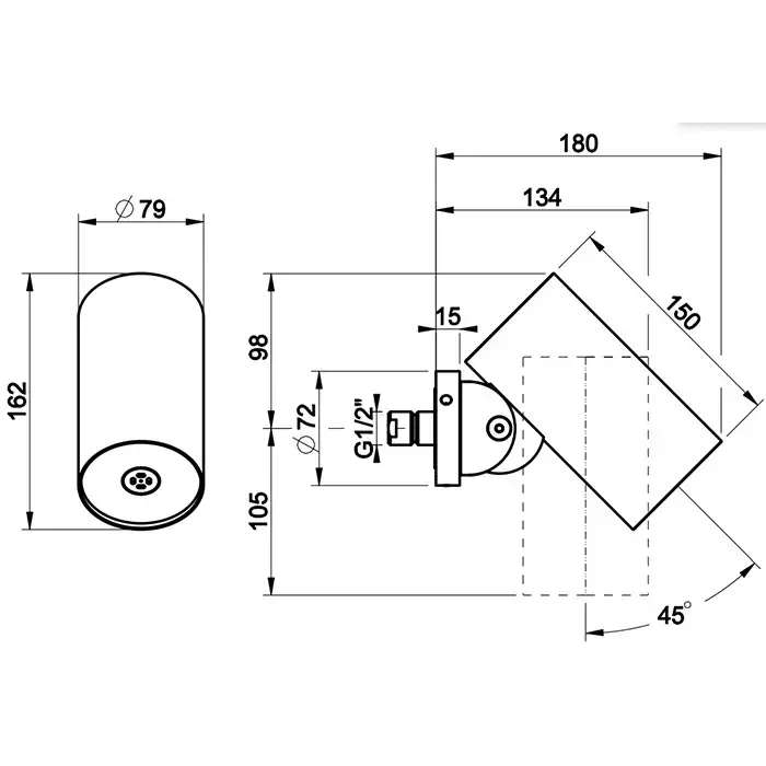GESSI 316 DIAMANTATO Верхний душ Ø79 мм., с настенным креплением, распыление, цвет Steel Brushed