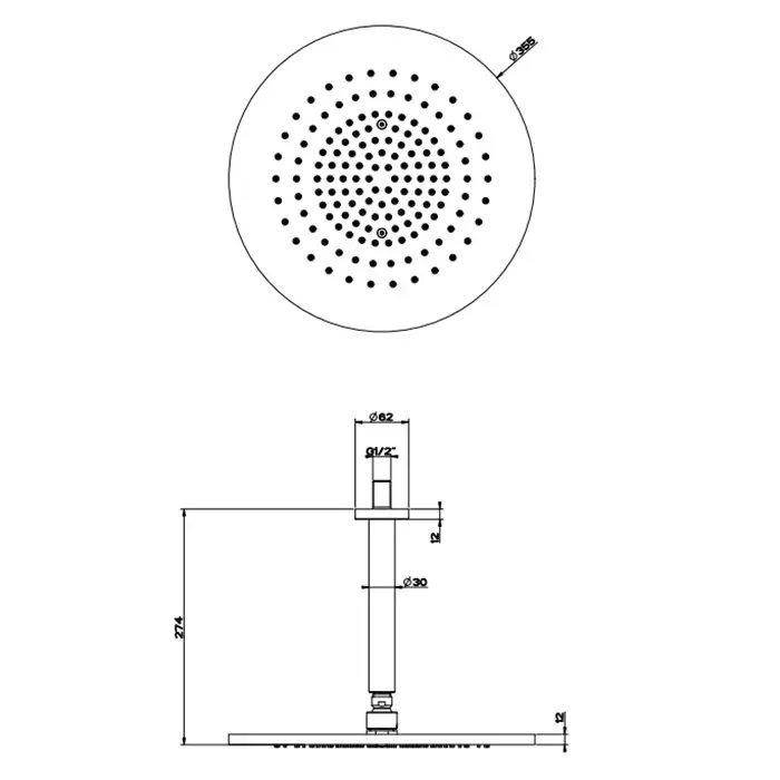 GESSI 316 Душевая головка шарнирная, потолочная на 1/2", Ø355мм, h=243мм, цвет: brushed black metal pvd