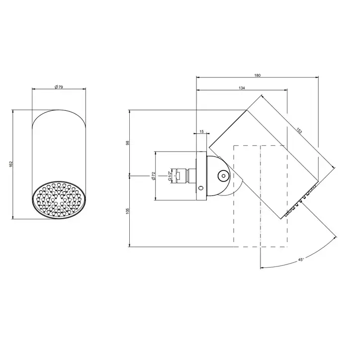 GESSI 316 FLESSA Верхний душ Ø79 мм., с настенным креплением, тропический ливень, цвет Black Metal Brushed PVD