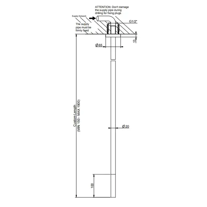 GESSI 316 Излив потолочный для удаленного управления, длина под заказ(365-1900мм), цвет: Black XL