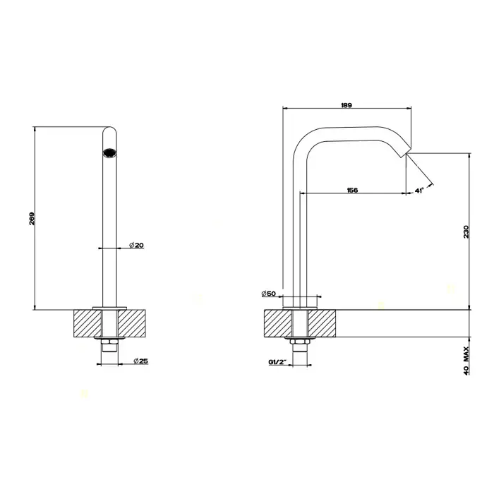 GESSI 316 Отдельно стоящий излив h=230мм , цвет: steel brushed