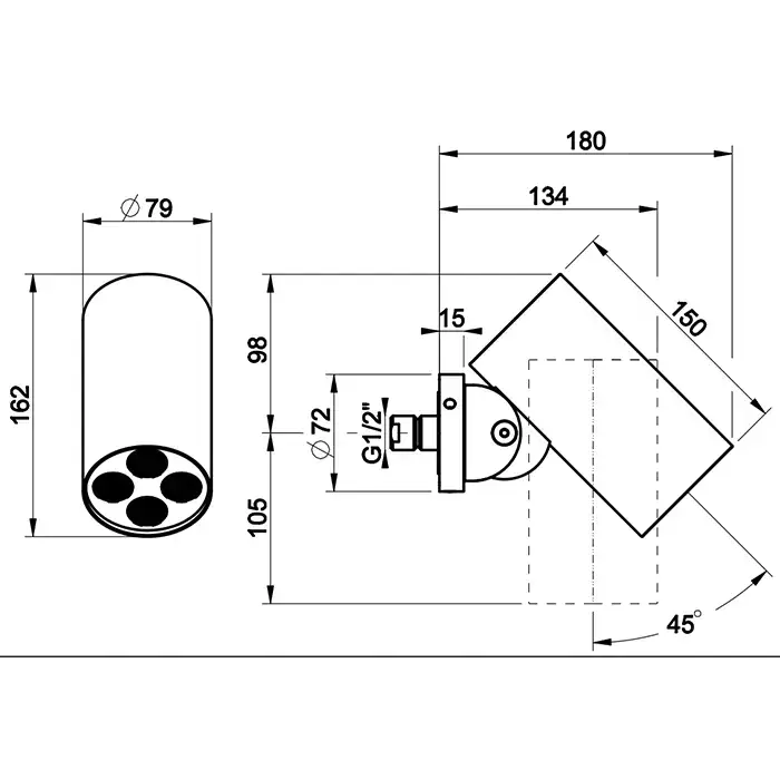 GESSI 316 RIGATO Верхний душ Ø79 мм., с настенным креплением, 4 струи, цвет Steel Brushed