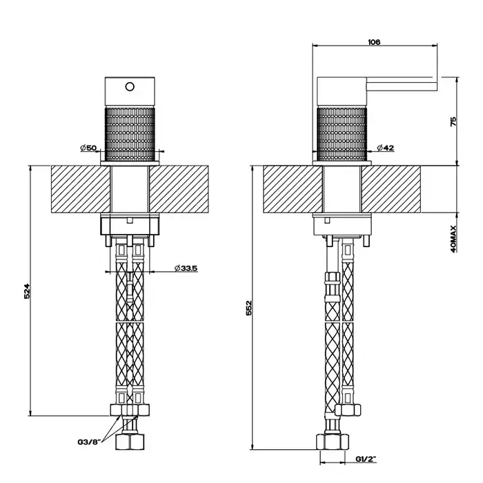 Gessi 316 Встраиваемый смеситель для ванны, автомат переключатель ванна-душ, держатель неподвижный, внешняя часть, цвет: brushed black metal pvd