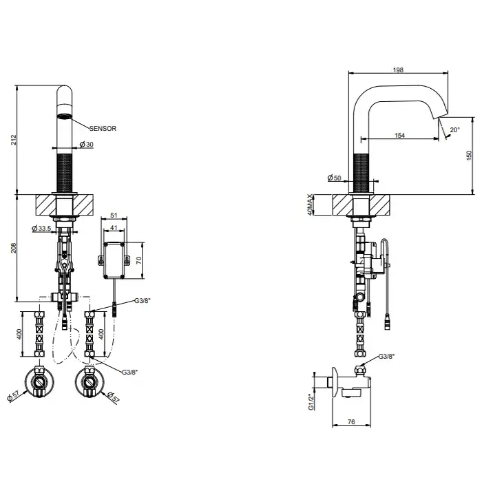 GESSI 316 CESELLO Смеситель для раковины, электронный, с кран-фильтром для регулировки температур и напора воды, выс излива 150 мм, цвет Steel Brushed