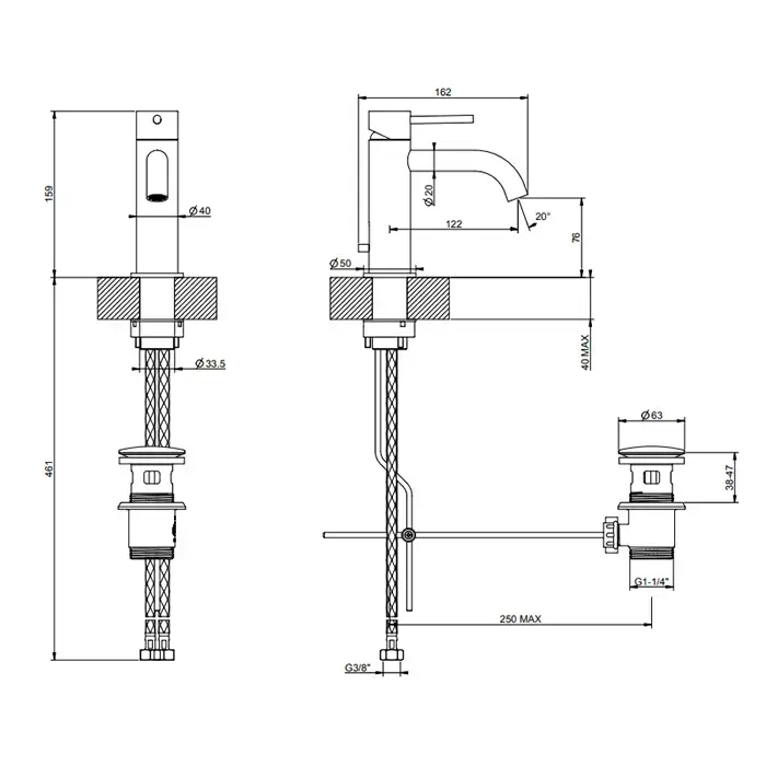 GESSI 316 Смеситель для раковины на 1 отверстие с донным клапаном, излив 123мм, цвет: brushed black metal pvd