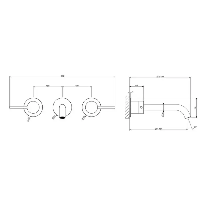 Gessi 316 Встраиваемый смеситель с изливом 200-180мм, внешняя часть, цвет: brushed black metal pvd