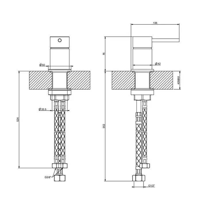 Gessi 316 Смеситель настольный, монтаж для удаленного управления, цвет: Black XL