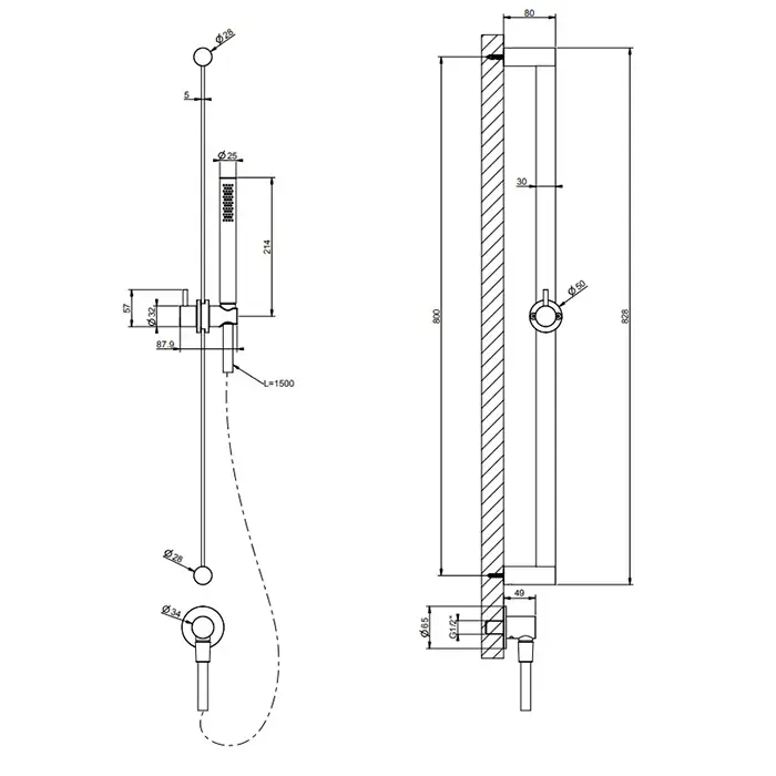 GESSI 316 Штанга в комплекте с душевой лейкой с легкой очисткой, шланг 1,50 м, вывод воды из стены, цвет: brushed black metal pvd