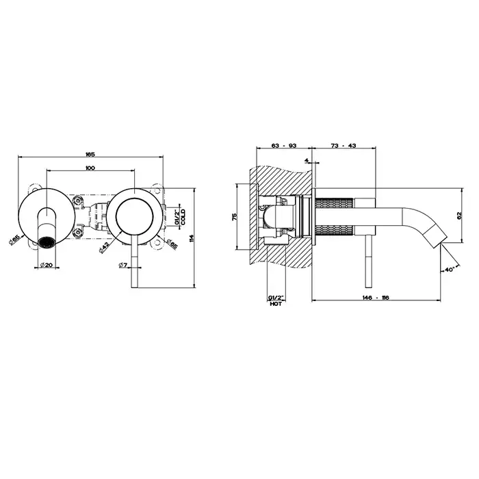 GESSI 316 Встраиваемый смеситель для раковины с изливом 146-116мм (внешняя часть), цвет: steel brushed