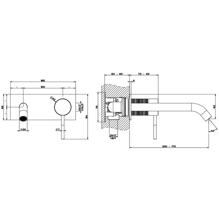 GESSI 316 Встраиваемый смеситель для раковины с изливом 200-170мм (внешняя часть), цвет: brushed black metal pvd
