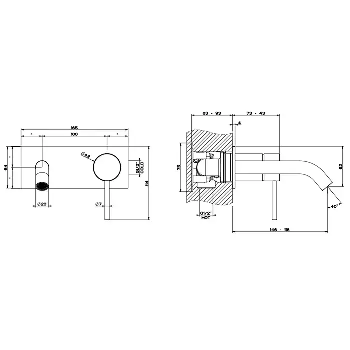 GESSI 316 Встраиваемый смеситель с изливом 147мм (внешние части), цвет: steel brushed