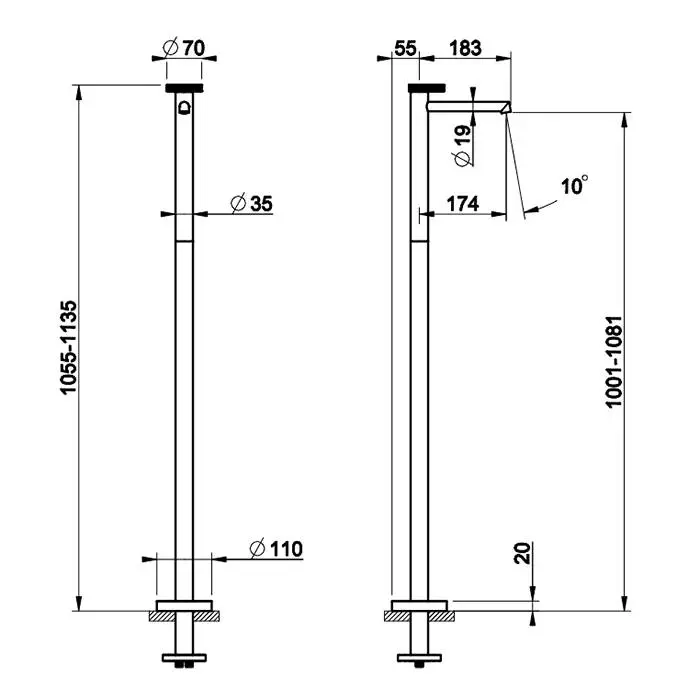 Gessi Anello Смеситель напольный для раковины ,излив 174 мм, внешняя часть, цвет: хром