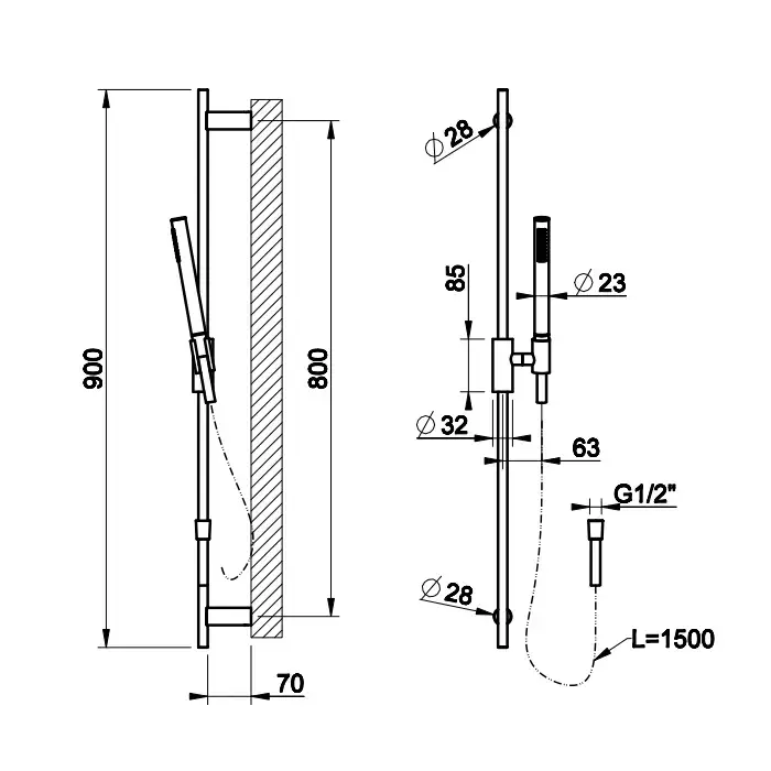 Gessi Anello Штанга в комплекте с душевой лейкой легкой очистки, шланг 1,50 м, цвет: хром