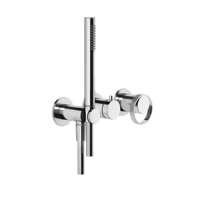 Gessi Anello Встраиваемый однорычажный смеситель на 2 выхода с перекл., ручным душем с держателем и выводом воды (внешние части), цвет: хром