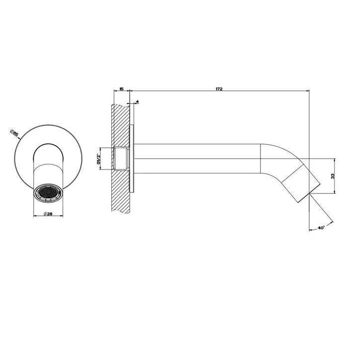 GESSI 316 Излив для ванны 172мм на 1/2", с удаленным управлением (не входит в комплект), цвет: steel brushed
