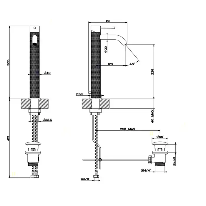 Gessi 316 Смеситель для раковины, на 1 отв., высокий h=30.5cм, с донным клапаном, излив: 15.5cм, цвет: Black XL