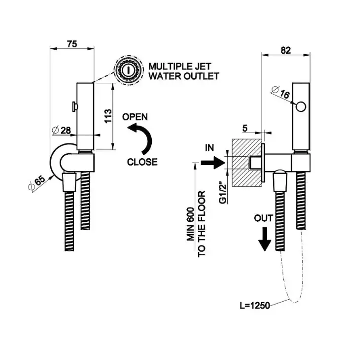 GESSI ELEGANZA Гигиенический душ с настенным держателем с подводом воды и шлангом 1250 мм., цвет Finox Brushed Nickel