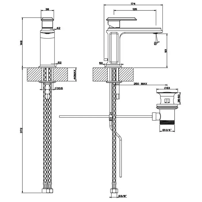 Gessi Eleganza Смеситель для раковины на 3 отверстия с донным клапаном, цвет: хром
