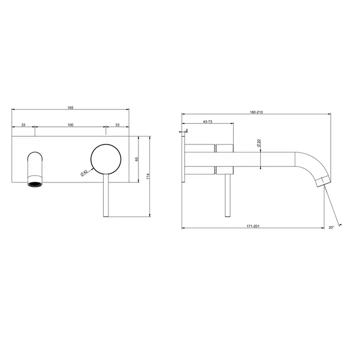 GESSI 316 Настенный излив 20см на 1/2", комбинируемый с удаленным управлением (не входит в комплект), цвет: Brushed Brass PVD