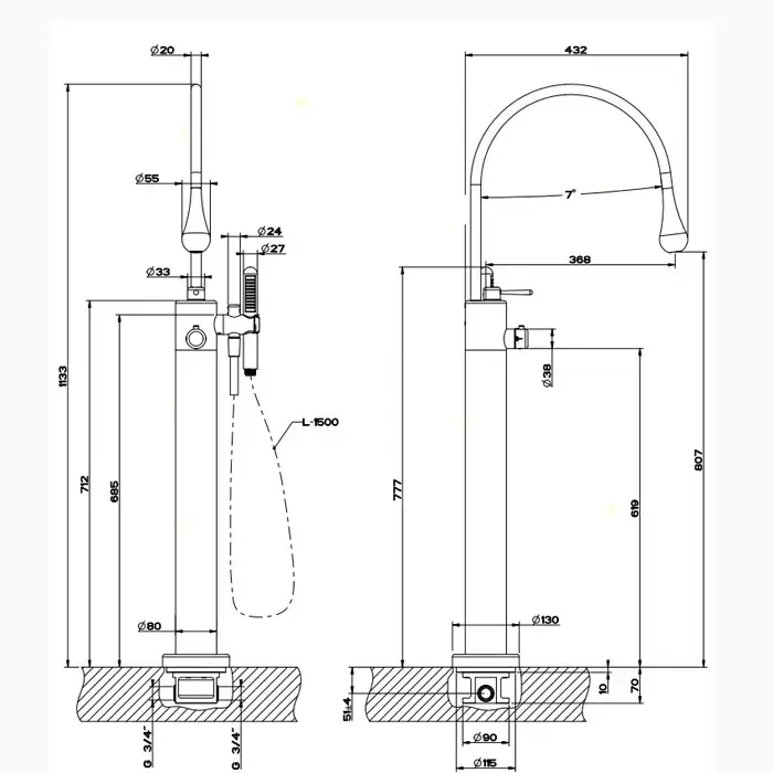 Gessi Goccia Напольный термостатический смеситель для ванны с ручным душем (внешняя часть), цвет: хром