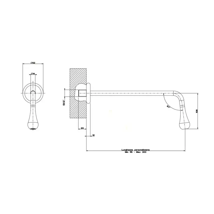 Gessi Goccia Настенный излив с инд.длиной (115-300мм), для монтажа с удаленным управлением 33700/33743 (не входит в комплект), цвет: black XL