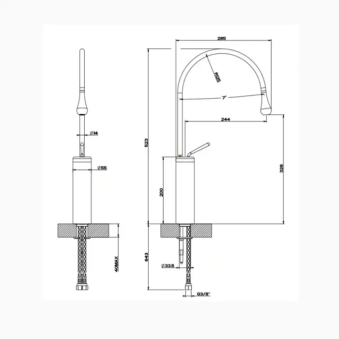 Gessi Goccia Смеситель для раковины на 1 отверстие, излив 244мм R=125, цвет: хром