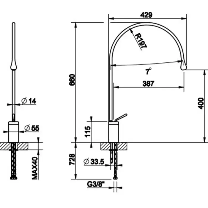 Gessi Goccia Смеситель для раковины на 1 отверстие, излив 387мм R=197, цвет: хром