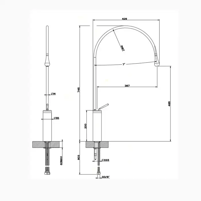Gessi Goccia Смеситель для раковины на 1 отверстие, излив 387мм R=197, цвет: хром