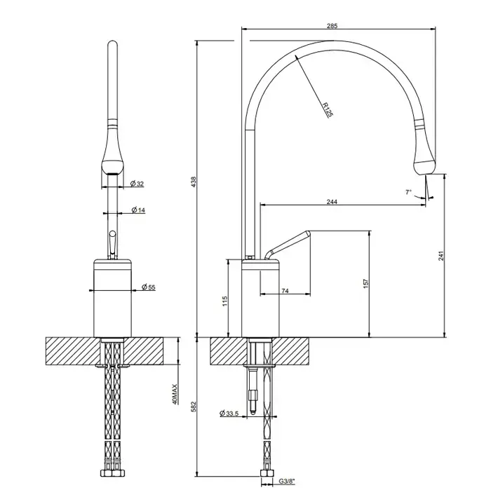 Gessi Goccia Смеситель для раковины на 1 отверстие, излив 244мм R=125, цвет: хром