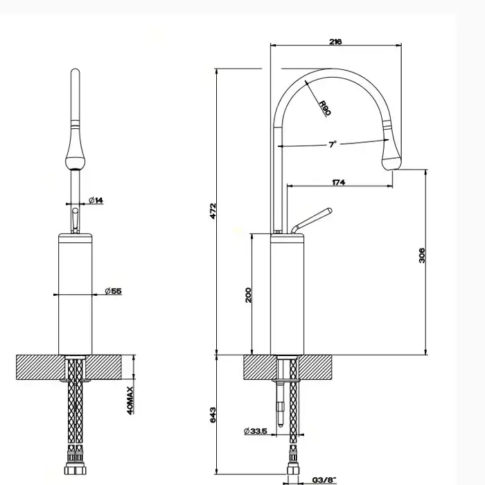 Gessi Goccia Смеситель для раковины на 1 отверстие, излив 174мм R=90, цвет: хром