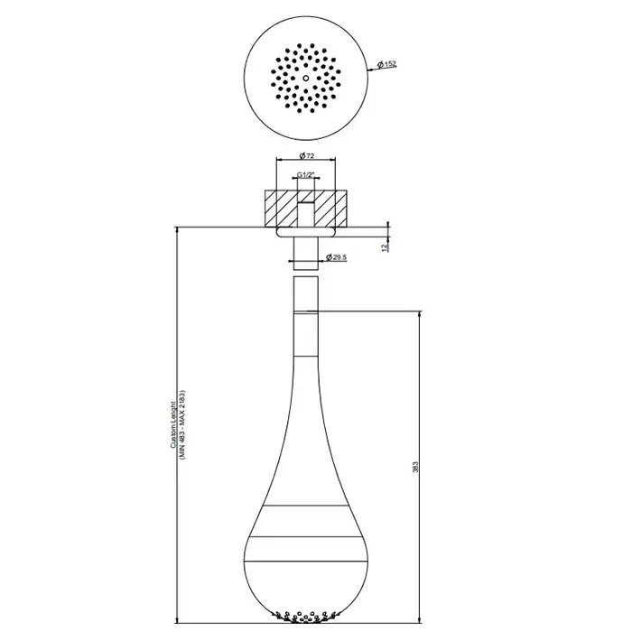 Gessi Goccia Верхний душ для потолочного крепления каплевидной формы, с инд.высотой (490-2100мм), цвет: белый
