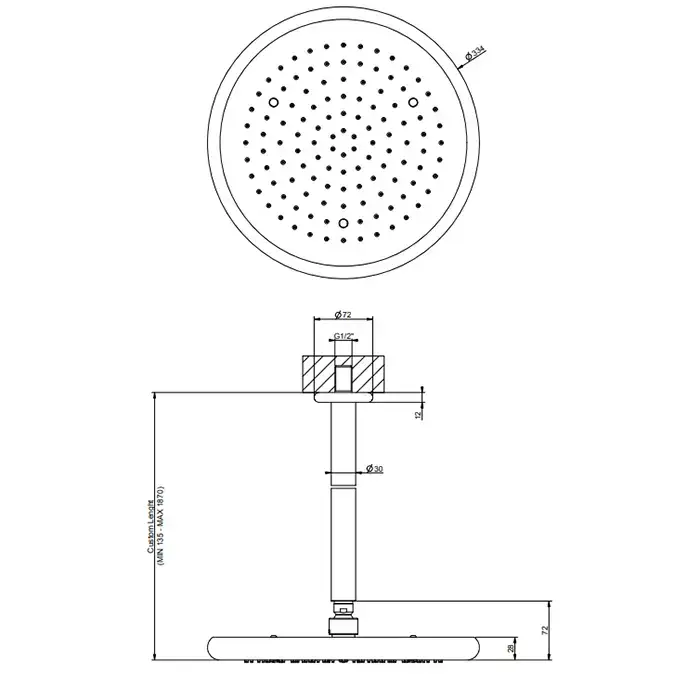 Gessi Goccia Верхний душ для потолочного крепления Ø306мм с инд.высотой (50-1800мм), цвет: белый