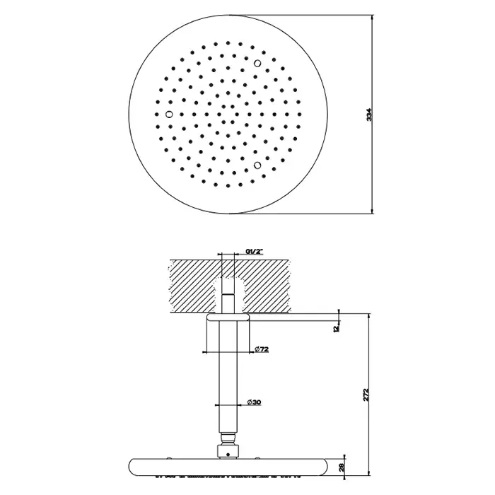 Gessi Goccia Верхний душ для потолочного крепления Ø306мм с инд.высотой (50-1800мм), цвет: черный