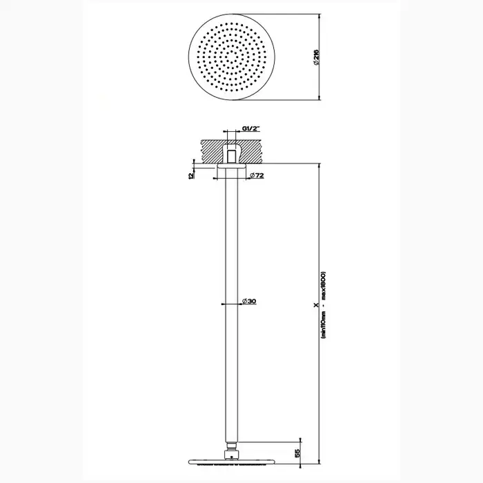 Gessi Goccia Верхний душ для потолочного крепления Ø216мм с инд.высотой (50-1800мм), цвет: хром