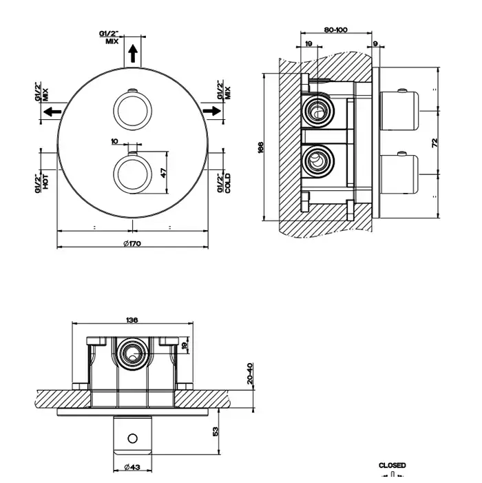 Gessi Goccia Встраиваемый термостат, подключение на 3/4", с переключателем на 3 выхода(внешние части), цвет: белый