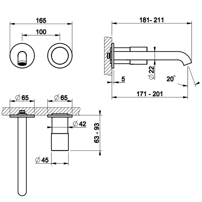 Gessi Habito Cesello Смеситель для раковины, настенный, цвет: Brass Brushed PVD