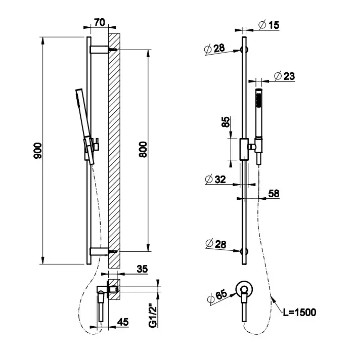 Gessi Habito Intreccio Душевой гарнитур: штанга, вывод воды, ручной душ и шланг 150см., цвет: Black Metal Brushed PVD