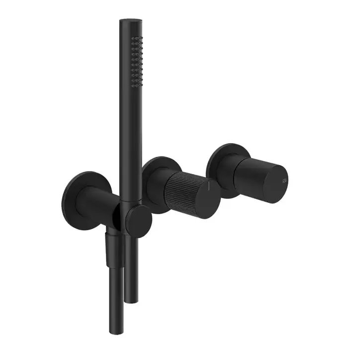 GESSI HABITO RIGATO Смеситель настенный встраиваемый, однорычажный, с перекл. на 2 положе., с ручным душем, настенным держателем, цвет Matte Black