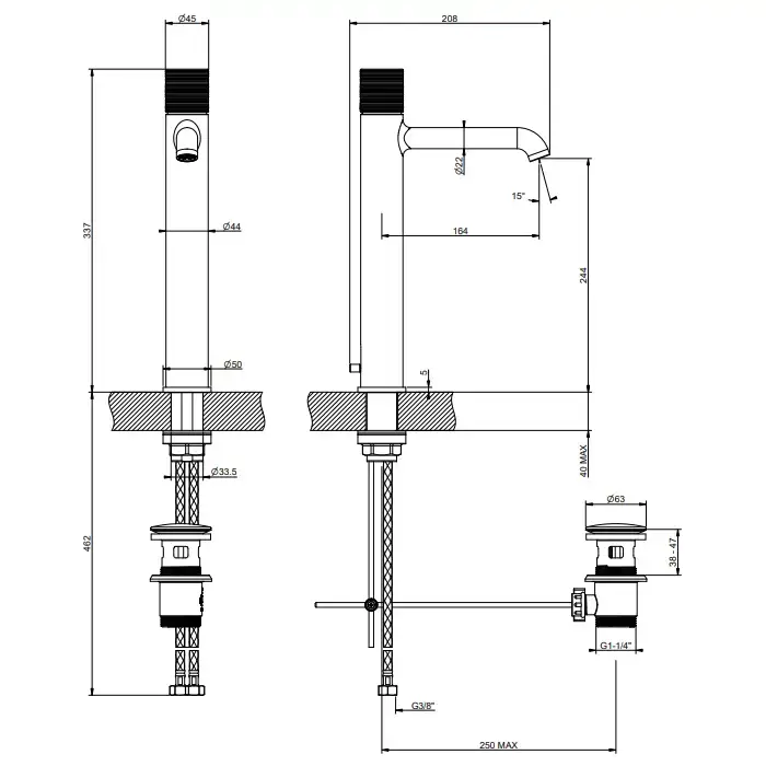 GESSI HABITO TRAME Смеситель для раковины высокий на 1 отверстие, однорычажный, в комплекте с донным клапаном, цвет Black Metal Brushed PVD