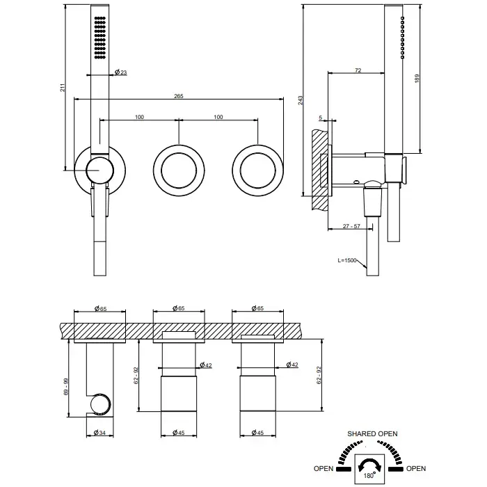 Gessi Habito Diamantao Смеситель настенный встраиваемый, однорычажный, с переключателем на 2 положения, с ручным душем, настенным держателем,цвет: хром