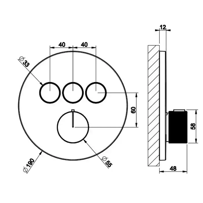 GESSI HI-FI COMFORT Смеситель настенный встраиваемый, термостатический, с 3 запорными кнопками, цвет Black Metal PVD