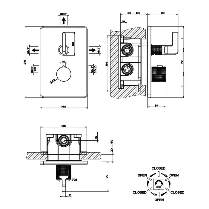 GESSI INCISO Термостатический смеситель на 3 источника (внешняя часть), цвет: хром