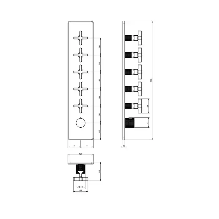 GESSI INCISO Встраиваемый термостатический смеситель на 5 источников, резьба 3/4" (внешние части), цвет: nero XL