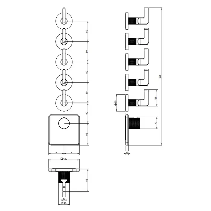 GESSI INCISO Встраиваемый термостатический смеситель на 5 источников, резьба 3/4" (внешние части), цвет: хром