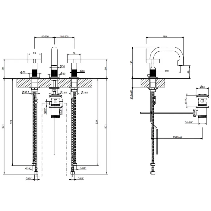 Gessi Inciso+ Смеситель для раковины на 3 отверстия, без донного клапана. цвет: black XL