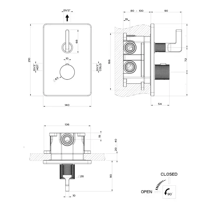 Gessi Inciso Смеситель для душа, встраиваемый, термостатический, резьба 3/4", внешняя часть, цвет: Black XL