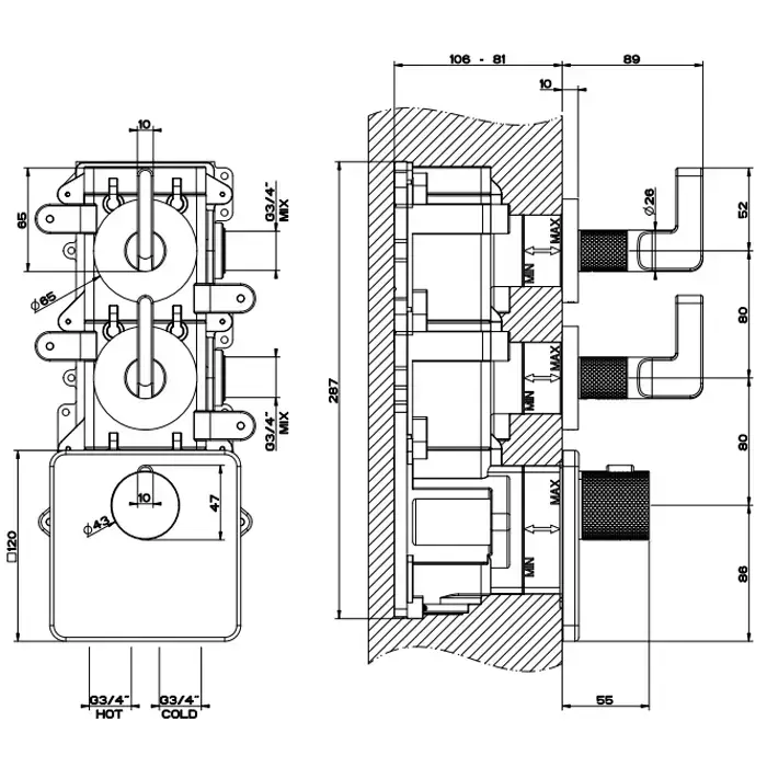 GESSI INCISO Встраиваемый термостатический смеситель на 2 источника, резьба 3/4" (внешние части), цвет: nero XL