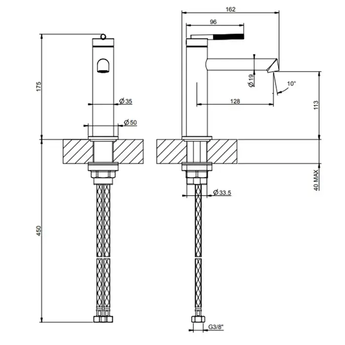 Gessi Ingranaggio Смеситель для раковины без донного клапана, с соединительными шлангами, цвет: Black Metal Brushed PVD