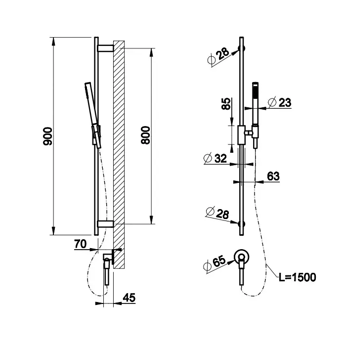 Gessi Ingranaggio Штанга в комплекте с душевой лейкой, шланг 1,50 м и вывод воды, цвет: хром